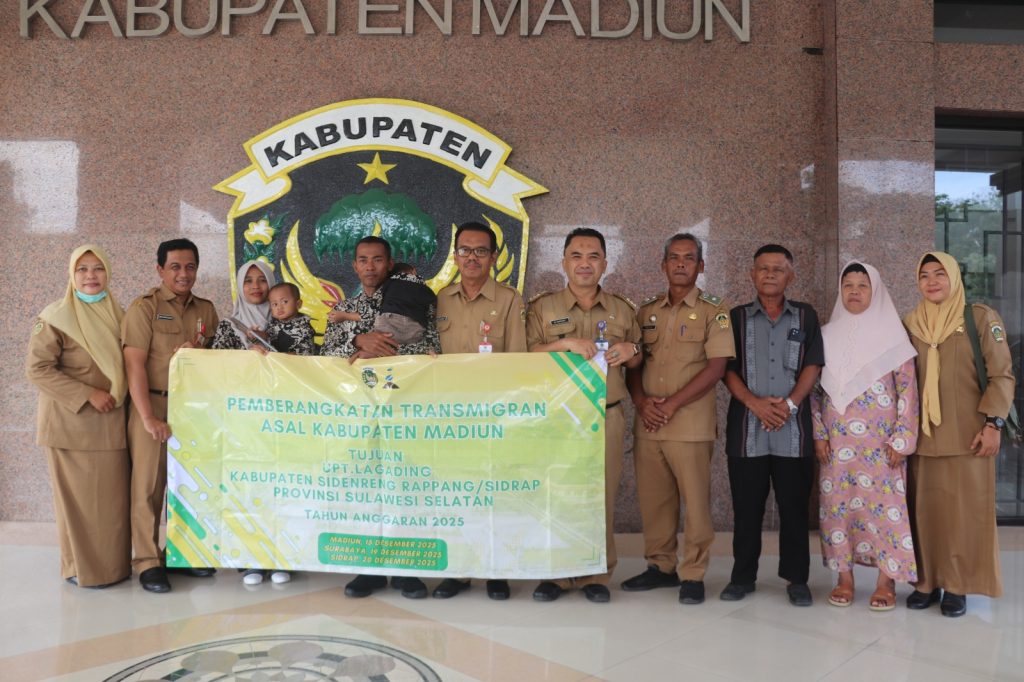 Madiun, serayunusantara.com – Pemerintah Kabupaten Madiun secara resmi melepas transmigran menuju UPT Lagading, Kabupaten Sidenreng Rappang, Sulawesi Selatan. Kegiatan berlangsung di Graha Praja Mukti, Puspem Caruban, Senin (15/12/2025), dan dihadiri jajaran pemda, perangkat desa, serta keluarga transmigran.