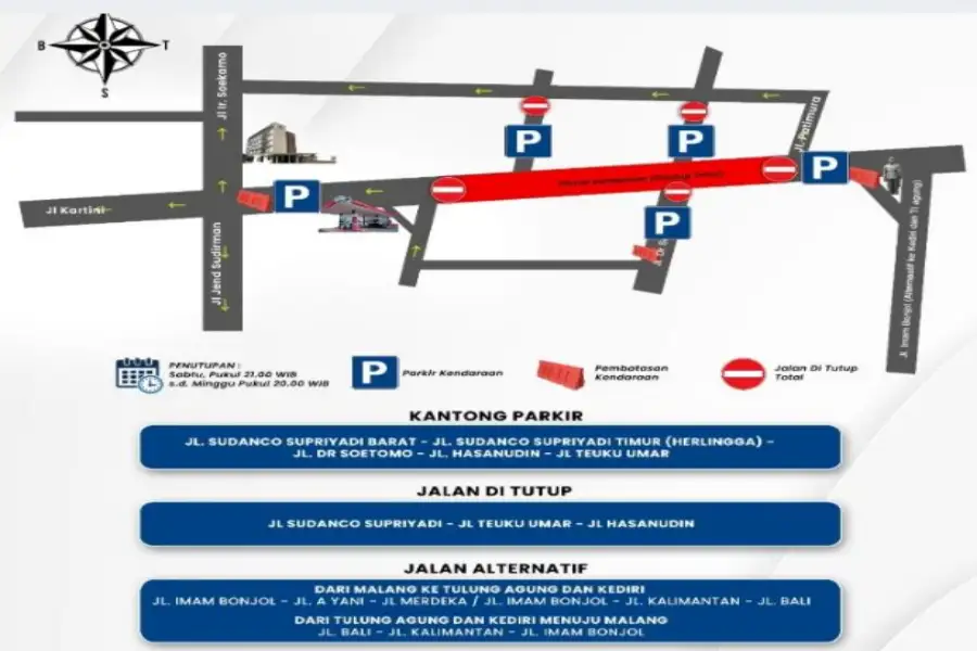 Blitar, serayunusantara.com — Para pengguna jalan di Kota Blitar perlu memperhatikan pengalihan arus lalu lintas akhir pekan ini.