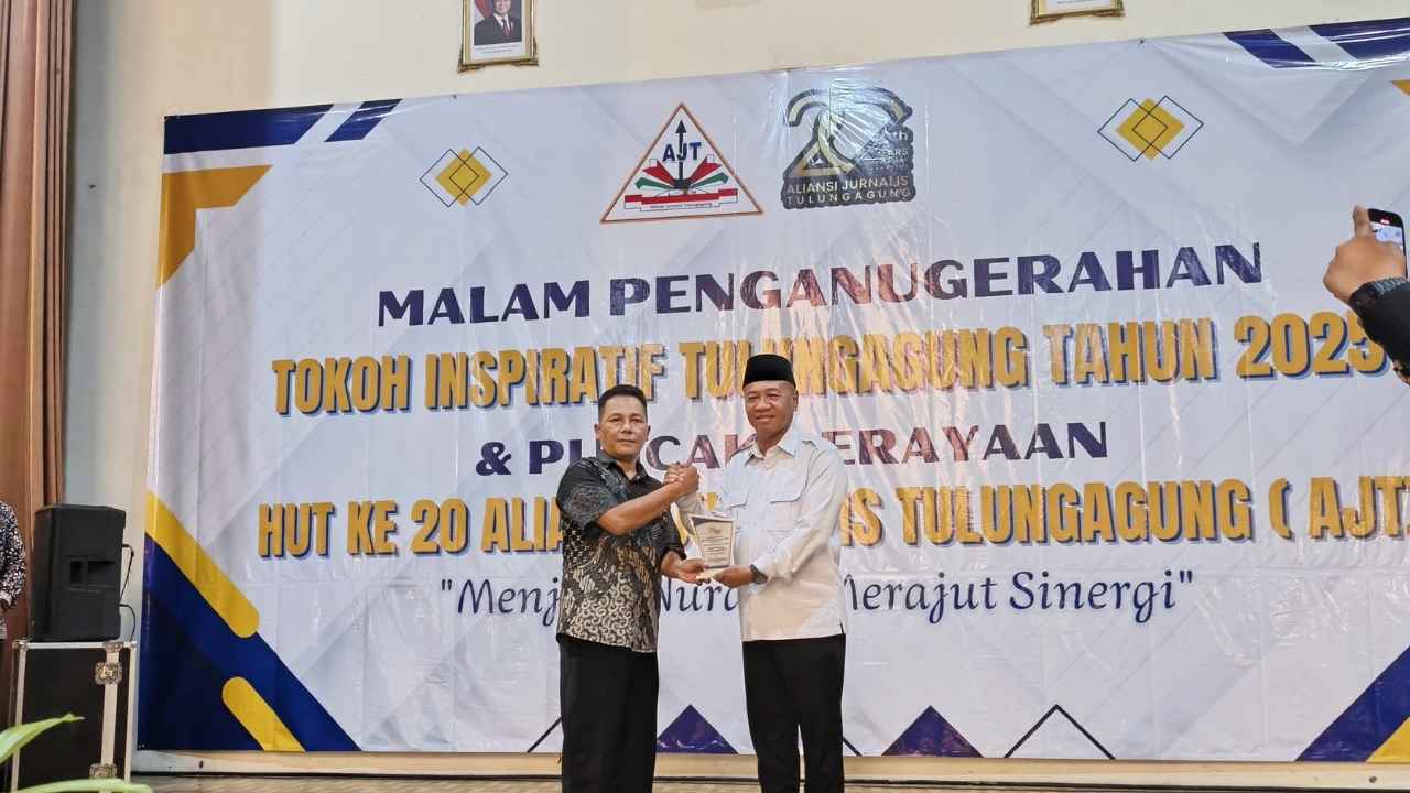 Tulungagung, serayunusantara.com – Aliansi Jurnalis Tulungagung (AJT) memberikan penghargaan Tokoh Inspiratif Tulungagung 2025 kepada Bupati Gatut Sunu Wibowo dalam malam penganugerahan yang digelar bertepatan dengan HUT ke-20 AJT di Gedung Barata, Senin (1/12/2025).