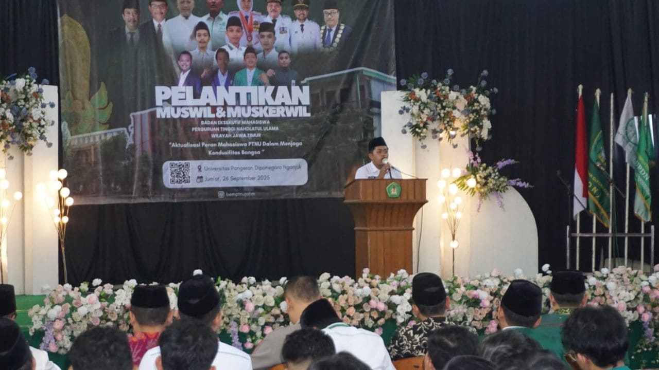 Nganjuk, serayunusantara.com – Badan Eksekutif Mahasiswa Perguruan Tinggi Nahdlatul Ulama’ (BEM PTNU) Jawa Timur gelar agenda pelatinkan di Universitas Pangeran Diponegoro (UPDN) Nganjuk dan dilanjutkan Musyawarah wilayah (Muswil) dan juga Musyawarah Kerja Wilayah (Muskerwil) pada Jum’at (26/9/2025).