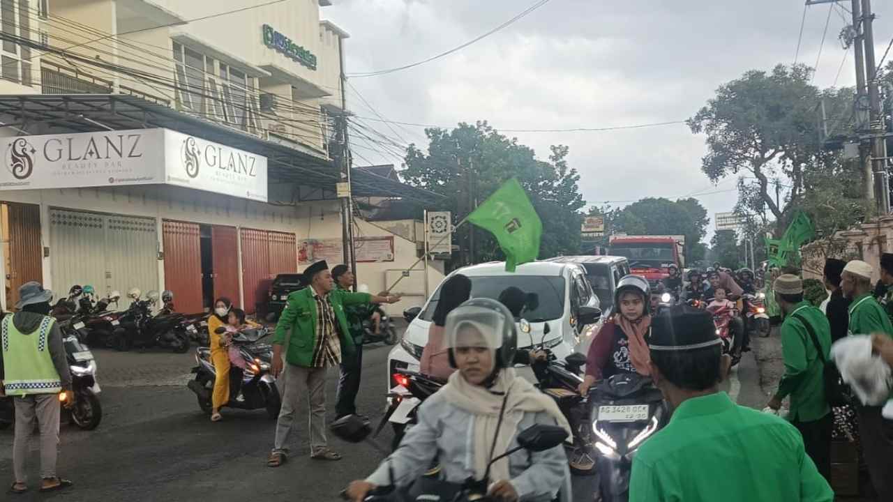 Ratusan kader turun ke jalan guna membagikan sedikitnya 3.000 paket takjil gratis kepada para pengguna jalan di depan Kantor DPC PPP, Kecamatan Kanigoro, Sabtu (7/3/2026) sore.