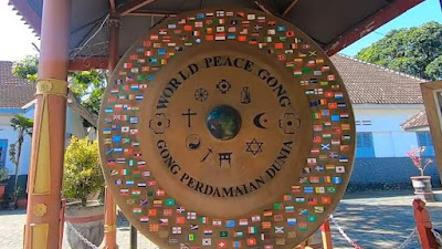 Ukuran gong yang besar dengan warna keemasan mengilap memancarkan aura yang khas, memikat setiap pasang mata yang melewatinya. Di permukaannya, terukir bendera dari berbagai negara di dunia, menandakan bahwa perdamaian adalah cita-cita bersama tanpa batas wilayah, ras, maupun agama.