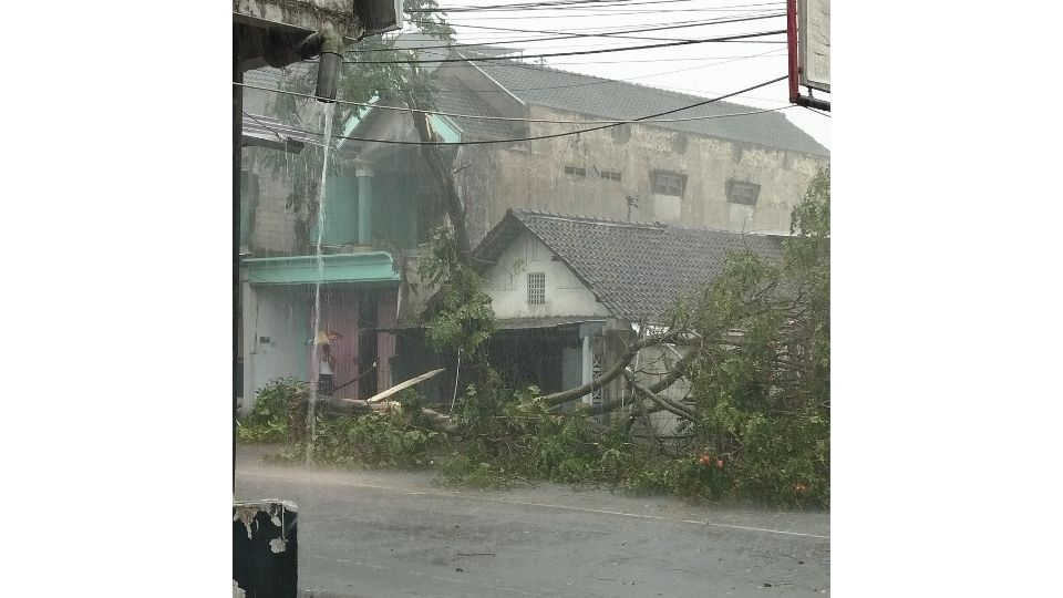 Di Jalan Bali, sebuah pohon berukuran cukup besar roboh melintang di tengah jalan. Kondisi tersebut membuat arus lalu lintas sempat tersendat karena kendaraan tidak bisa melintas.