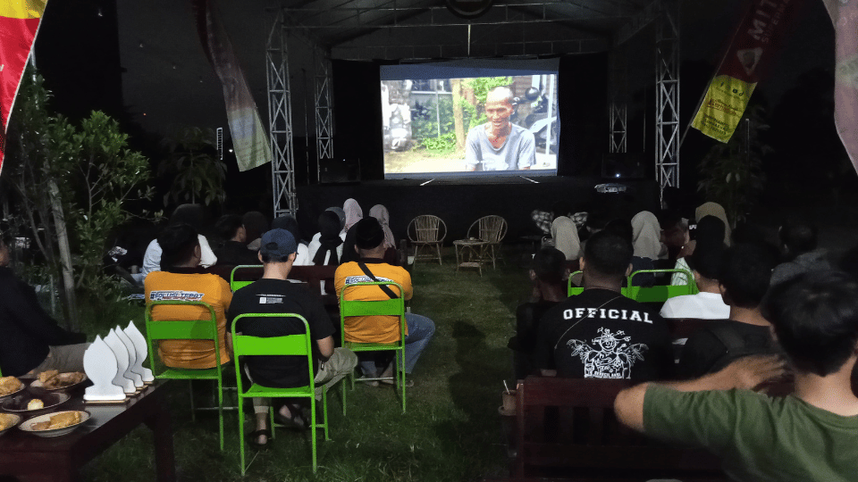 Para pemuda, aktivis lingkungan, hingga pelanggan setia kopi tubruk duduk bersila, terpaku menatap layar yang menceritakan kegigihan sosok dalam menjaga martabat alam.