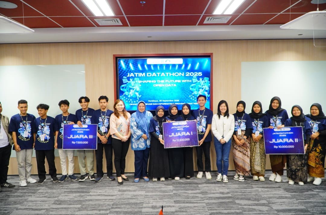Kompetisi Jatim Datathon 2025 merupakan hasil kolaborasi Dinas Kominfo Jatim bersama Narasio Data, STIKOSA AWS, Western Sydney University Indonesia, Jagoan Data, Google, dan Litbang Kompas. Ajang ini menjadi sarana mahasiswa untuk mengasah kemampuan analisis data, pemrograman, serta merancang solusi berbasis open data yang bermanfaat secara sosial maupun ekonomi.