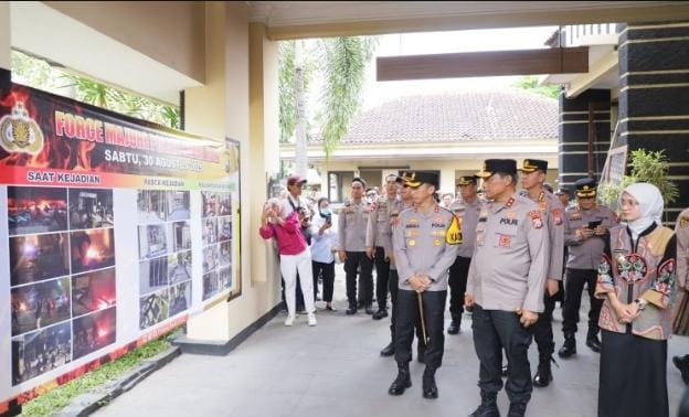 Kunjungan ini bertujuan untuk meninjau langsung kondisi pasca kerusuhan akhir Agustus yang mengakibatkan kerusakan pada sejumlah fasilitas kepolisian, termasuk Polsek Kediri Kota dan Satlantas.