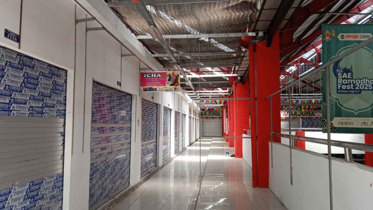 Suasana lengang langsung terasa saat menaiki tangga menuju lantai dua. Lorong-lorong pasar yang dulu ramai kini tampak kosong.