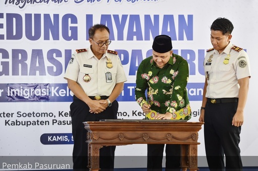 Peresmian kantor tersebut dilakukan langsung oleh Bupati Pasuruan, Rusdi Sutejo, pada Kamis (5/2/2026). Acara ditandai dengan penandatanganan prasasti oleh Bupati yang akrab disapa Mas Rusdi bersama Kepala Kantor Wilayah Direktorat Jenderal Imigrasi Jawa Timur, Novianto Sulastono, Wakil Bupati Pasuruan Shobih Asrori, serta Wakil Wali Kota Pasuruan Muhammad Nawawi.