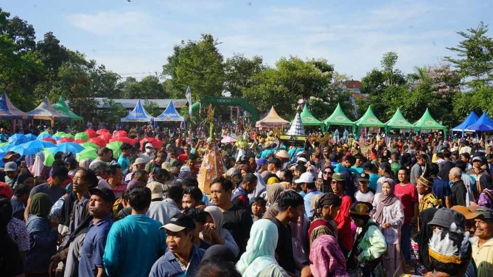 Ribuan warga tumpah ruah memadati area festival untuk menyaksikan kirab budaya sekaligus mengikuti prosesi andum berkah—tradisi berbagi hasil bumi, makanan khas, dan produk UMKM yang menjadi ciri khas Desa Candirejo.