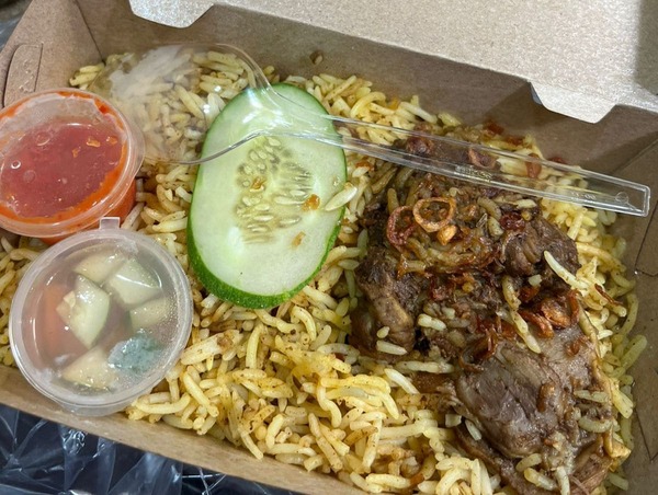 Menu ini menjadi pilihan karena menawarkan rasa gurih dan kaya bumbu, namun tetap seimbang di lidah. Proses memasaknya pun tidak singkat. Daging terlebih dahulu dimasak bersama rempah hingga empuk, kemudian kaldu hasil rebusan digunakan untuk menanak nasi agar bumbu meresap sempurna. Cara ini membuat rasa nasi tidak hanya harum, tetapi juga padat dan berkarakter.