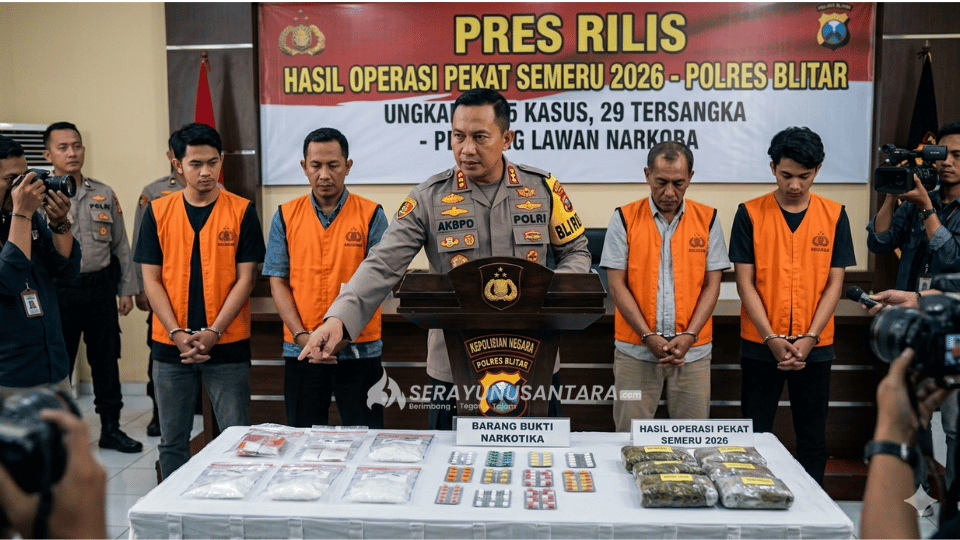 Blitar, serayunusantara.com — Komitmen tanpa kompromi dalam memberantas peredaran gelap narkotika di wilayah hukum Kabupaten Blitar kembali dibuktikan oleh jajaran Kepolisian Resor (Polres) Blitar, Kamis (26/03/2026).
