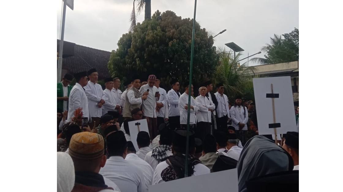Sebelum memasuki halaman Mapolres, massa terlebih dahulu memarkirkan kendaraan di luar area kantor polisi. Mereka kemudian berjalan kaki menuju lokasi sambil melantunkan dzikir dan kalimat tahlil “Laa Ilaaha Illallaah” secara serempak.