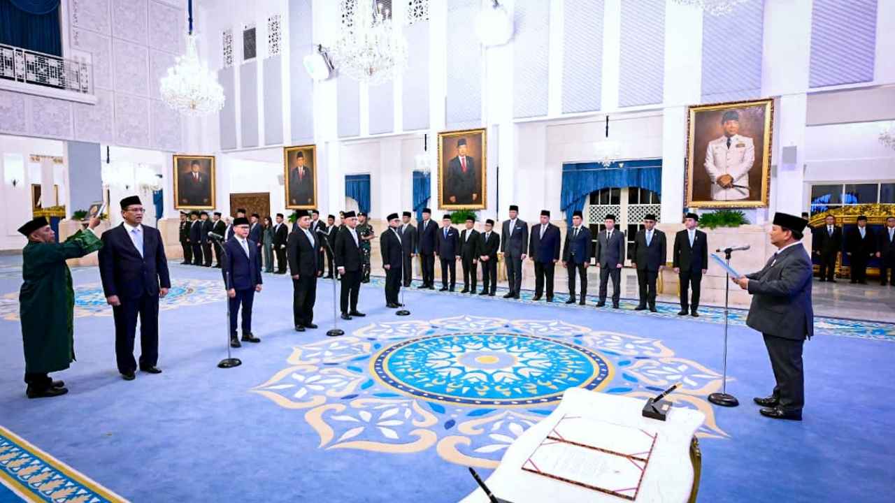 Dalam prosesi tersebut, Presiden Prabowo membacakan sumpah jabatan yang diikuti para menteri dan wakil menteri terlantik.