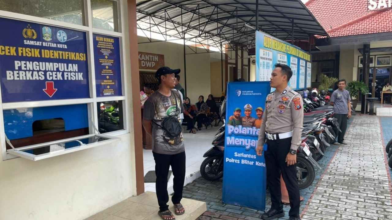 Kasat Lantas Polres Blitar Kota, AKP Agus Prayitno, melalui Kasi Humas IPTU Samsul Anwar menyatakan bahwa dalam kegiatan Polantas Menyapa petugas Satpas dan Samsat memberikan pelayanan kepada masyarakat mengenai mekanisme pengurusan surat kendaraan, baik perpanjangan maupun penerbitan baru, serta memberikan imbauan langsung kepada pemohon SIM agar selalu tertib berlalu lintas.