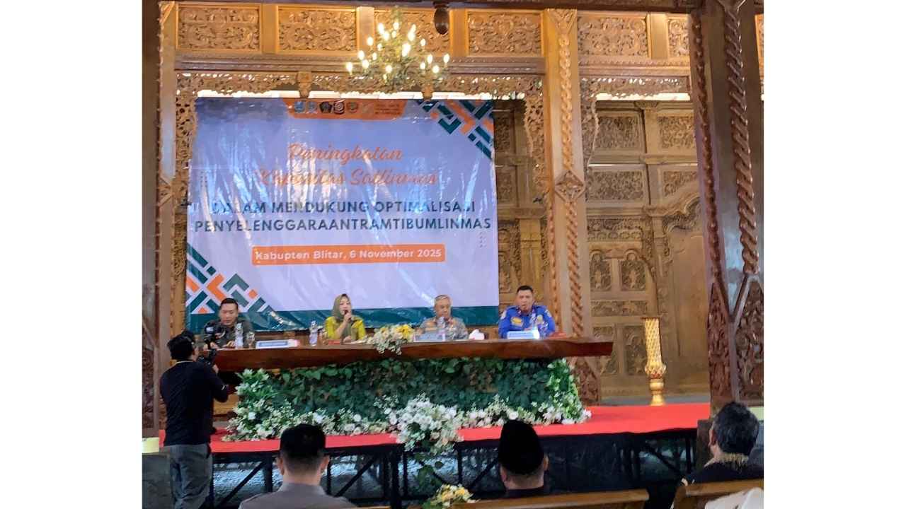 Blitar, serayunusantaa.com – Satpol PP Provinsi Jawa Timur bersama Komisi E DPRD Provinsi Jatim menggelar kegiatan Peningkatan Kapasitas Satlinmas di Pendopo Hand Asta Sih, Kecamatan Srengat, Kabupaten Blitar, Kamis (6/11/2025).