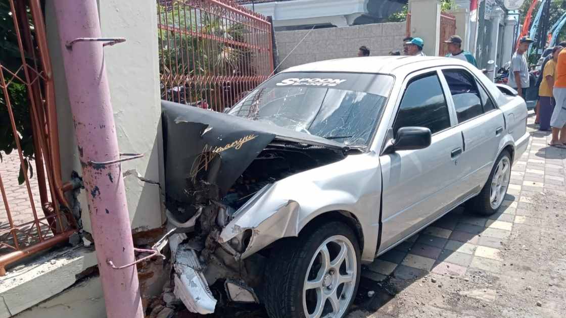 Benturan keras membuat pengendara motor dan anaknya terpental. Mobil pelaku pun tak terkendali hingga menabrak pagar serta tiang listrik di tepi jalan.