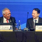 Menteri PUPR Basuki Hadimuljono berbincang dengan President of the ADB Masatsugu Asakawa