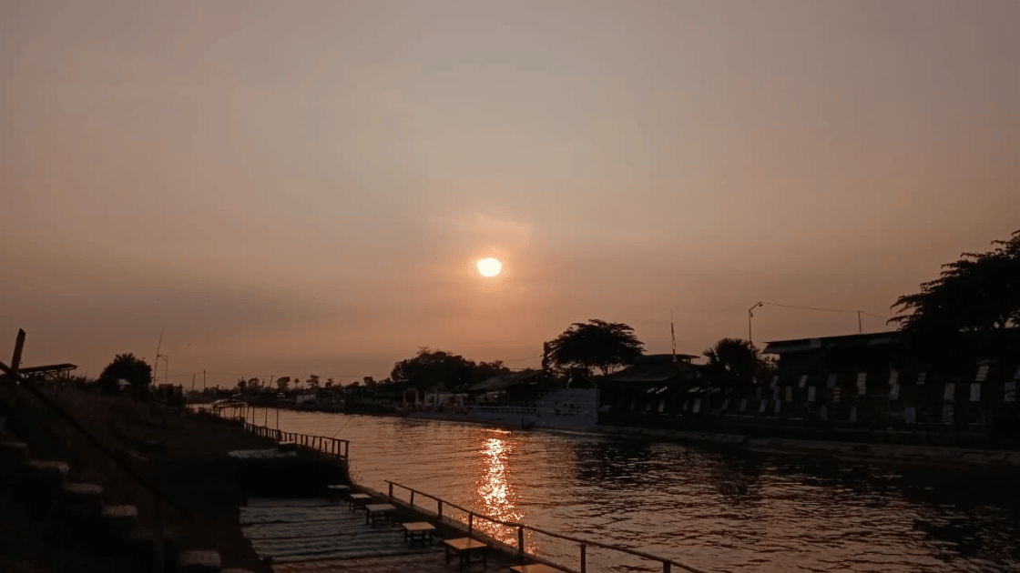 Hamparan air irigasi, siluet pepohonan, serta langit jingga yang perlahan memudar membuat siapa pun betah duduk lebih lama. Banyak pengunjung datang sejak sore untuk mencari angin segar sambil menikmati suasana pedesaan yang tenang.