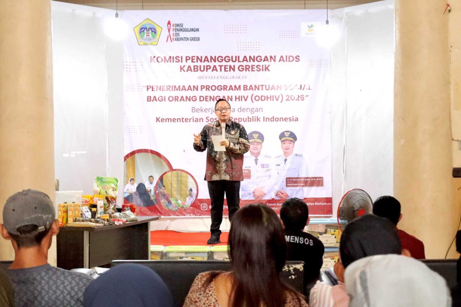 Gresik, serayunusantara.com – Wakil Bupati Gresik, Asluchul Alif, menyerahkan bantuan tahap pertama kepada Orang Dengan HIV (ODHIV) pada Kamis (26/02/2026). Penyaluran bantuan yang berlangsung di Kantor Komisi Penanggulangan AIDS (KPA) Gresik tersebut merupakan hasil kolaborasi dengan Kementerian Sosial Republik Indonesia.